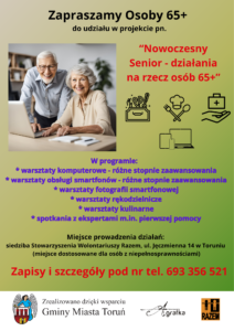 Nowoczesny senior – działania na rzecz osób w wieku 65+ (projekt współfinansowany ze środków Gminy Miasta Toruń)